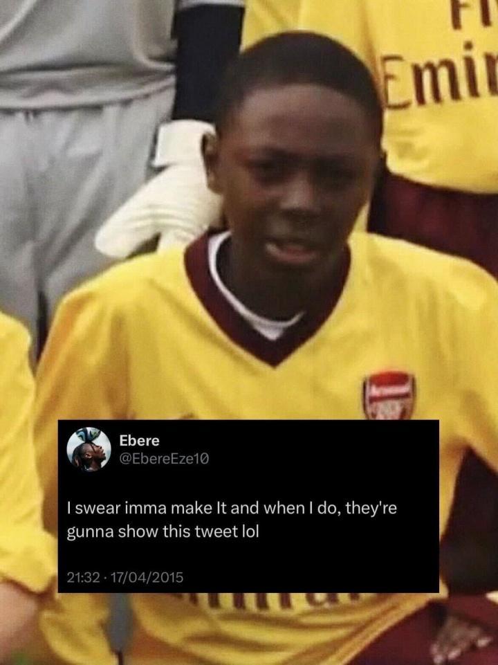 ε=(´ο`*)))唉,埃泽还是去热刺了吗?等等!不对!怎么穿的阿森纳球衣伟大的哈弗茨!伟大的贝尔塔!热刺体检室的下一站是——阿森纳训练基地热刺球迷此刻心情:一下午就截胡了?好快的截胡14年一个轮回你知道的,我一直是阿森纳球迷埃泽,你这家伙十年前埃泽社媒:我发誓我一定会成功,等到那时,他们...